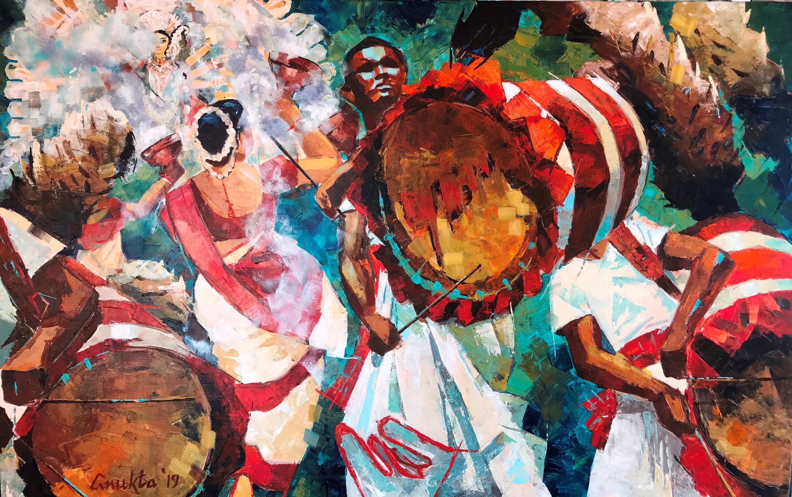 DHAAK DHUNUCHI | 48 x 30 in | acrylic on canvas